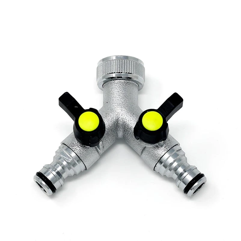 This connects directly to your outside tap and allows you to run two hoses at the same time. It also comes with the shut-off valves so one or both sides can be isolated. There are many brass hose fittings available, but we only stock the best. Quality and longevity is assured when buying from us. Can be used with any Hozelock style hose end connector. These brass hose fittings are generally used by professional gardeners, contractors and the horticultural trade for their reliability and strength.