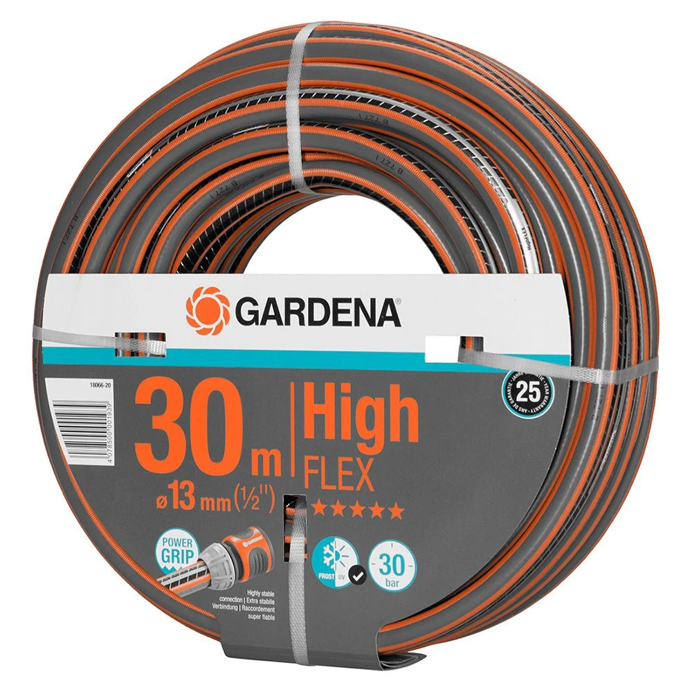 The Gardena Comfort Highflex 30m Hose with Power Grip profile is a durable hose designed for extreme conditions. The Comfort Highflex hose is designed with dense, high-quality spiral mesh textile that can maintain its shape even when subjected to high pressure. The additional wall thickness means this hose can easily withstand pressure up to 30 Bar.