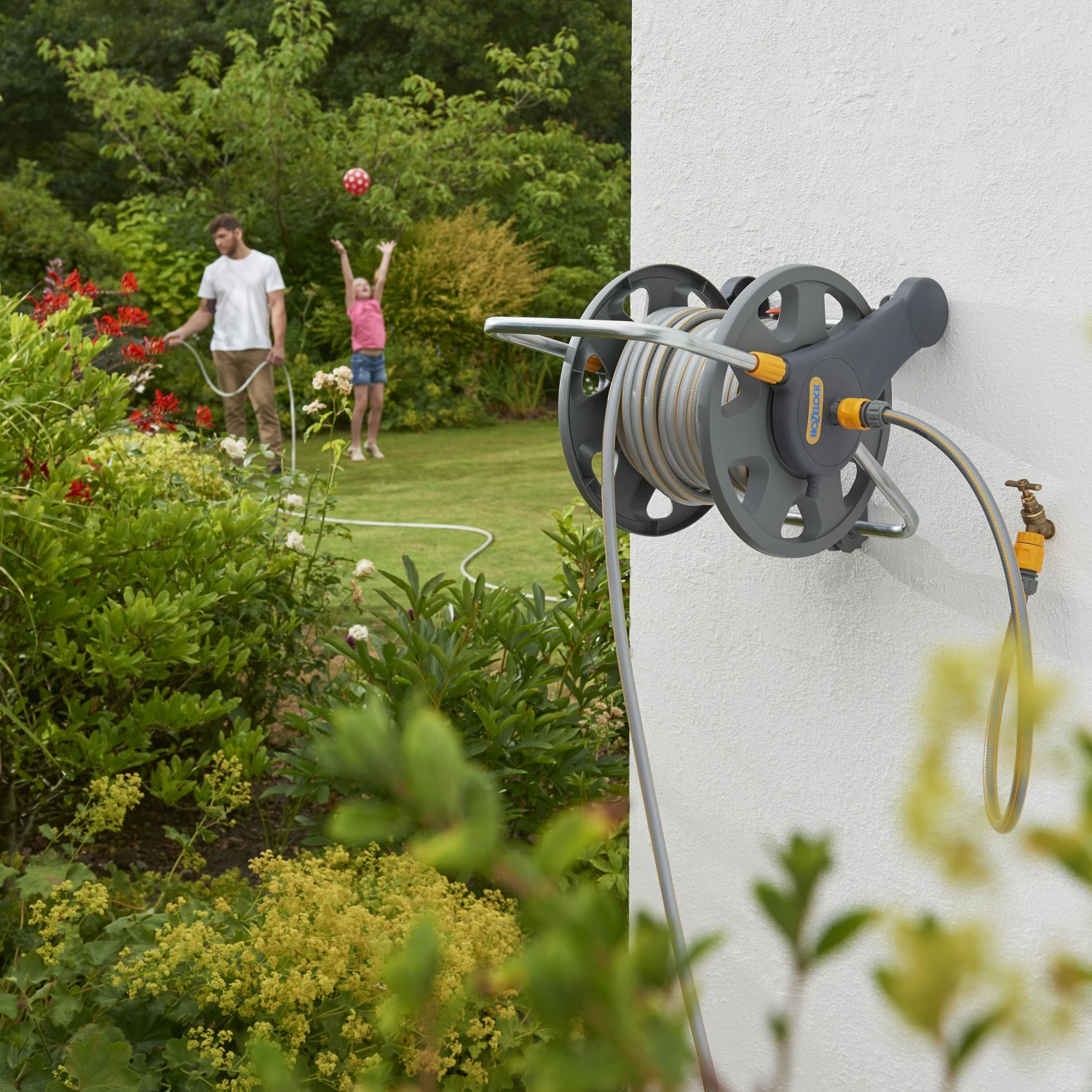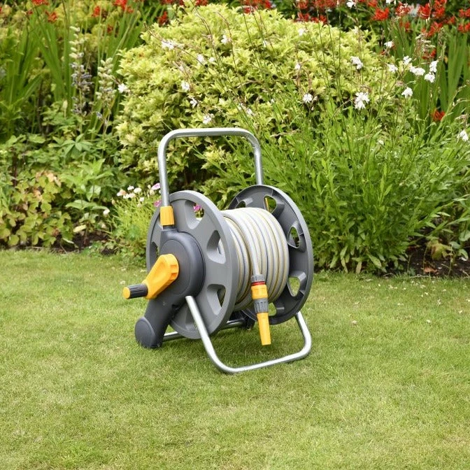 This pre-assembled Hose Reel comes complete with a 25-metre length of high-quality, multi-purpose garden hose and hose fittings, ready to use straight away. Its compact size, sturdy base and robust metal handle make it easy to carry and use. With a maximum capacity of 45 metres, this hose reel will be your companion for years to come. Made from the highest quality materials, the 45m capacity hose reel will stand the hard-wearing challenge of all tasks.