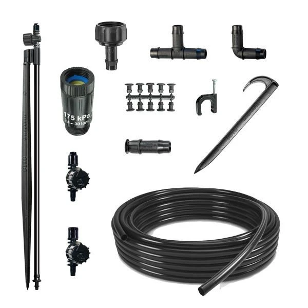 We’ve used our wealth of knowledge to create the perfect micro jet irrigation kits to get you up and running quickly with an irrigation system of your own. The Micro Jet System Medium Kit is a comprehensive kit that includes all the parts needed to install a micro jet irrigation system for up to 18 metres of flower bed/border, or up to 5 vegetable patches. Once installed, the micro jet system will provide the water necessary for your plants to grow lush and healthy and free your spare time for leisure and relaxation. Use in conjunction with a