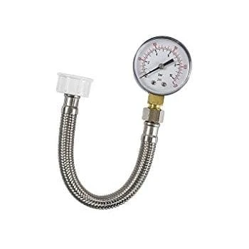 An excellent quality tool for testing static water pressure of your home’s domestic plumbing. 3/4” BSPF thread for fitting to standard taps and a flexible braided stainless steel hose.